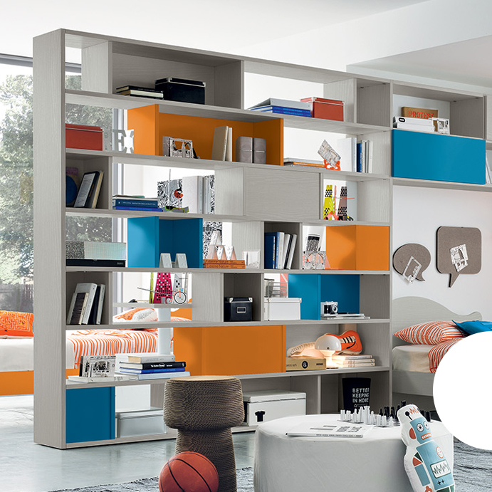 Nelle camere per bambini e ragazzi si custodiscono giocattoli, libri, avventure e sogni. Per tenerli ben ordinati, le librerie sono elementi indispensabili in ogni composizione, senza appesantire gli spazi.