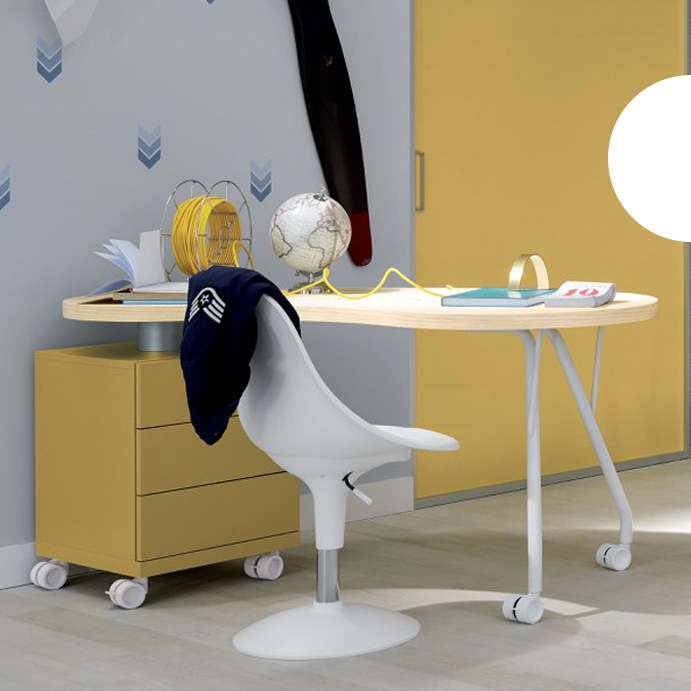 Immancabili nelle camerette sia classiche che moderne le scrivanie devono essere resistenti, pratiche e possono essere personalizzate nei formati e colori. Per completare l’angolo studio occorre abbinare sedie colorate e confortevoli.