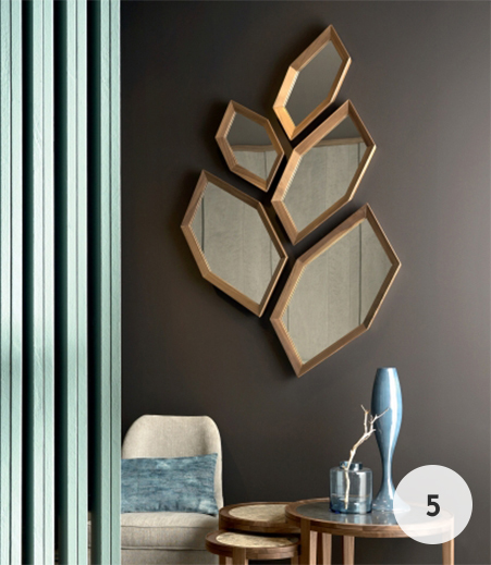Disegna liberamente sulla parete la tua idea di libreria orizzontale o verticale con il modulo Raster di Tomasella (6) un elemento autonomo, funzionale e dinamico o con la Specchiera Hexagone di Arte Brotto (5) che libera la creatività e asseconda con soluzioni su misura le esigenze funzionali, estetiche e di spazio.
