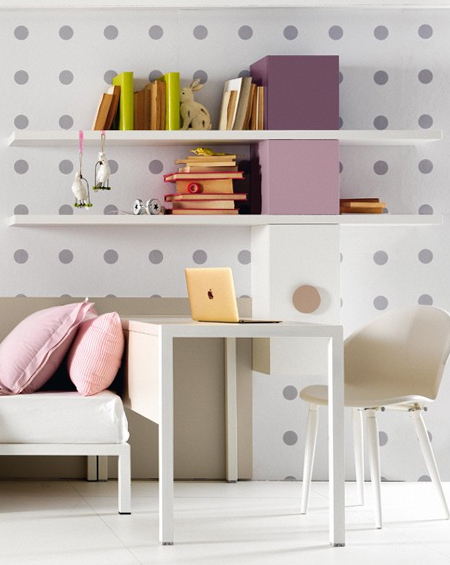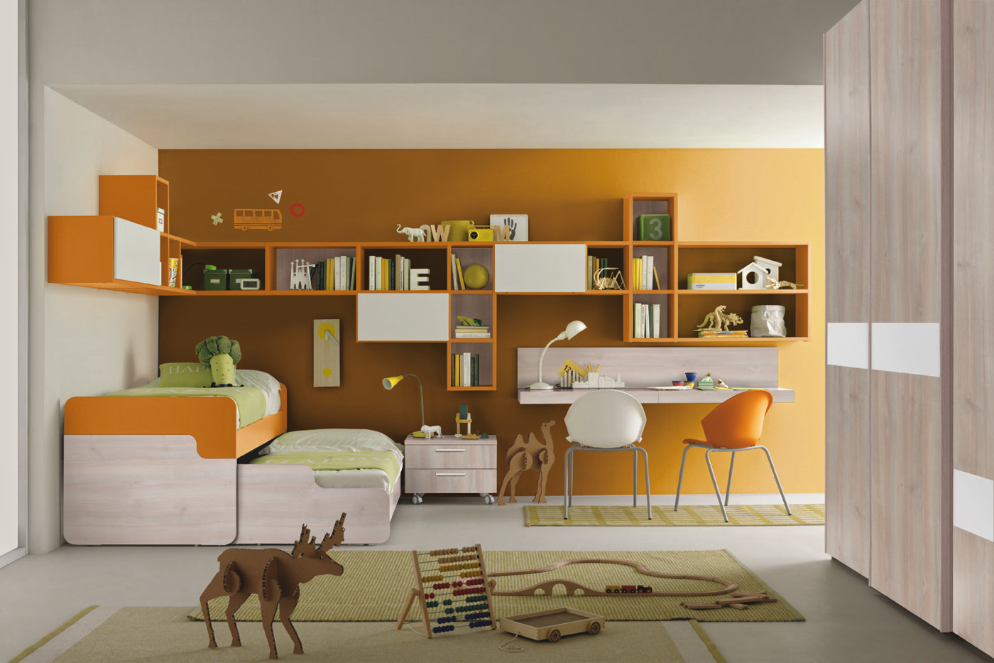 Più che lo spazio orizzontale (che servirà ai bambini per muoversi), di una cameretta è necessario sfruttare la verticalità, quindi le pareti.